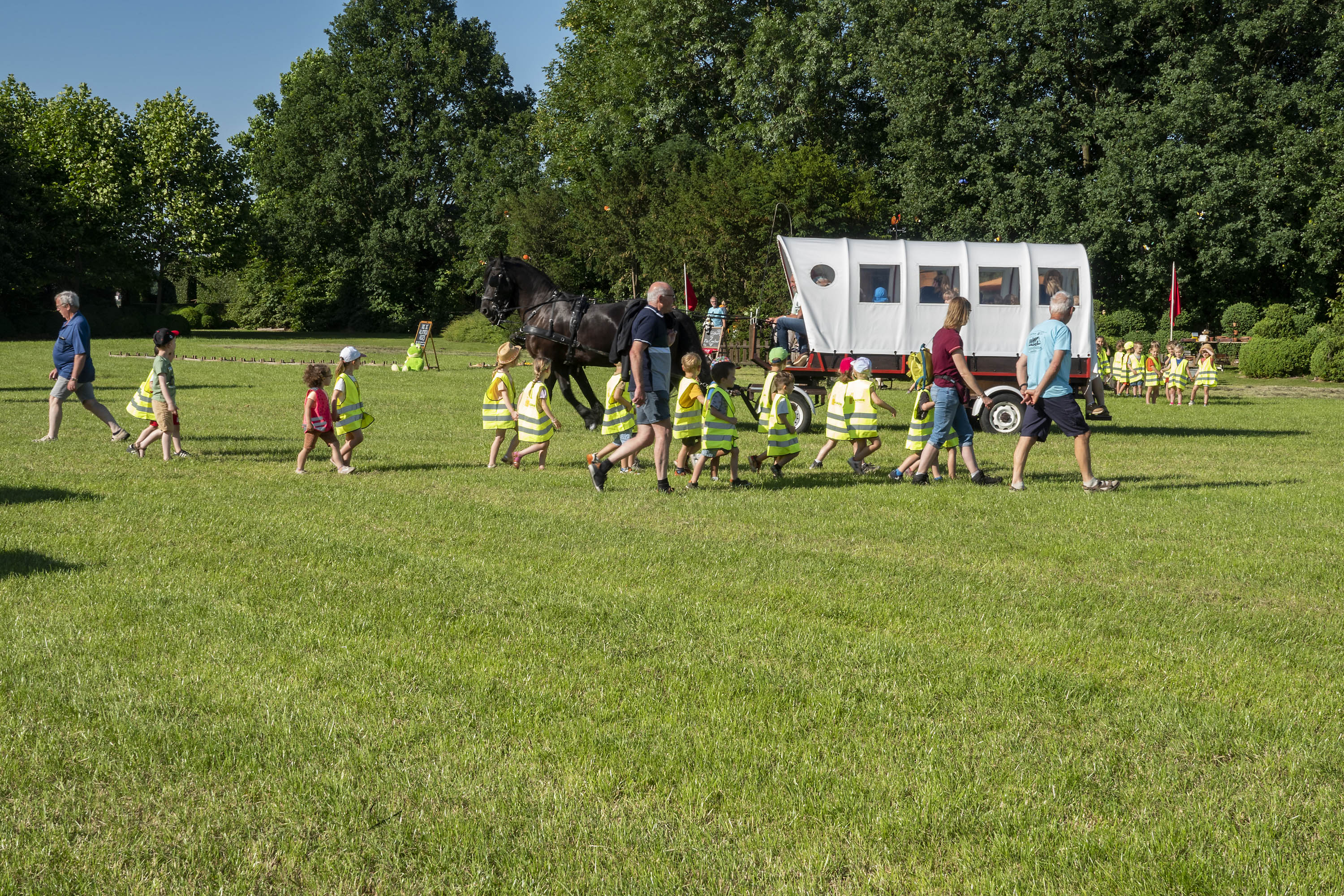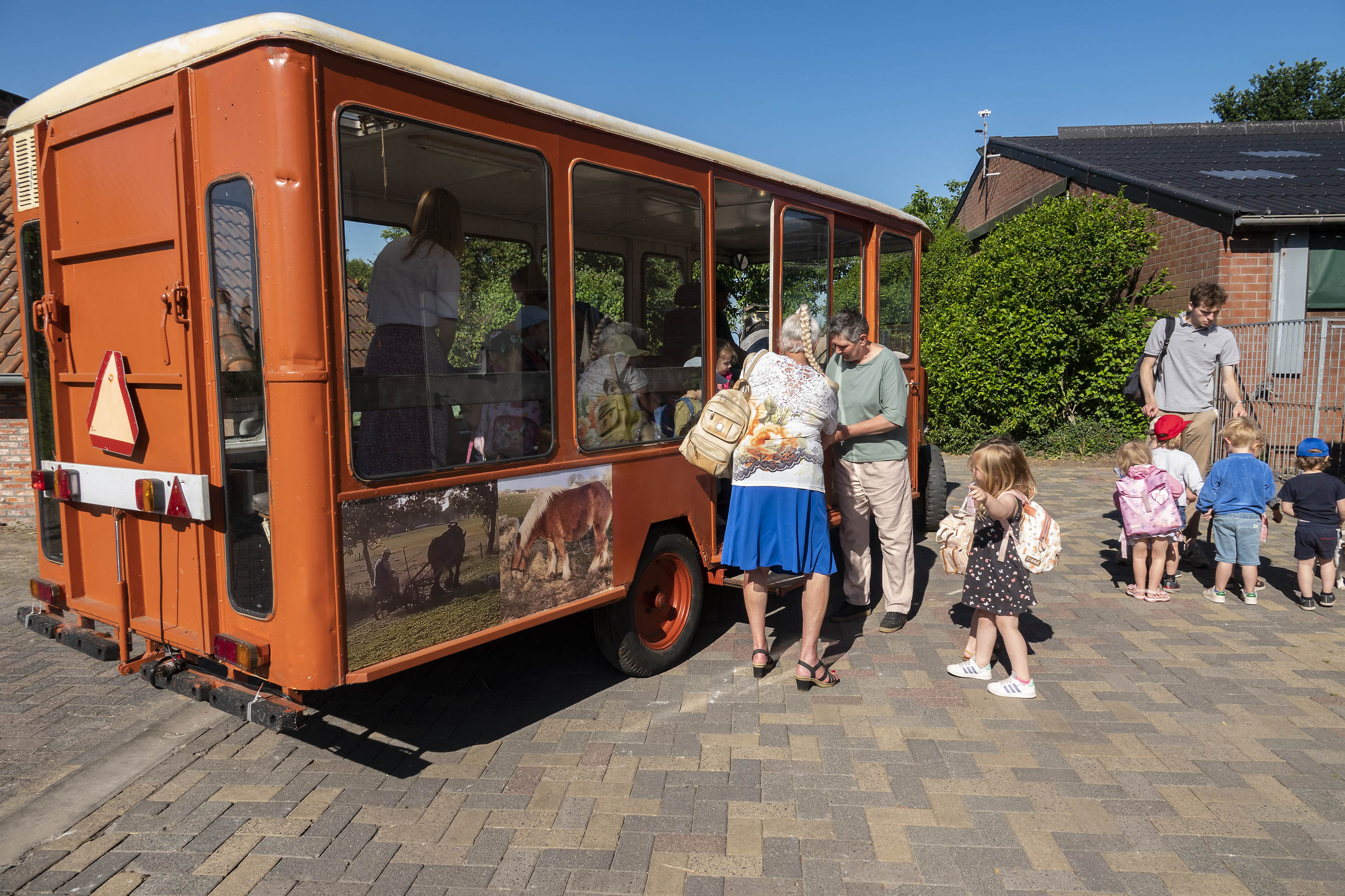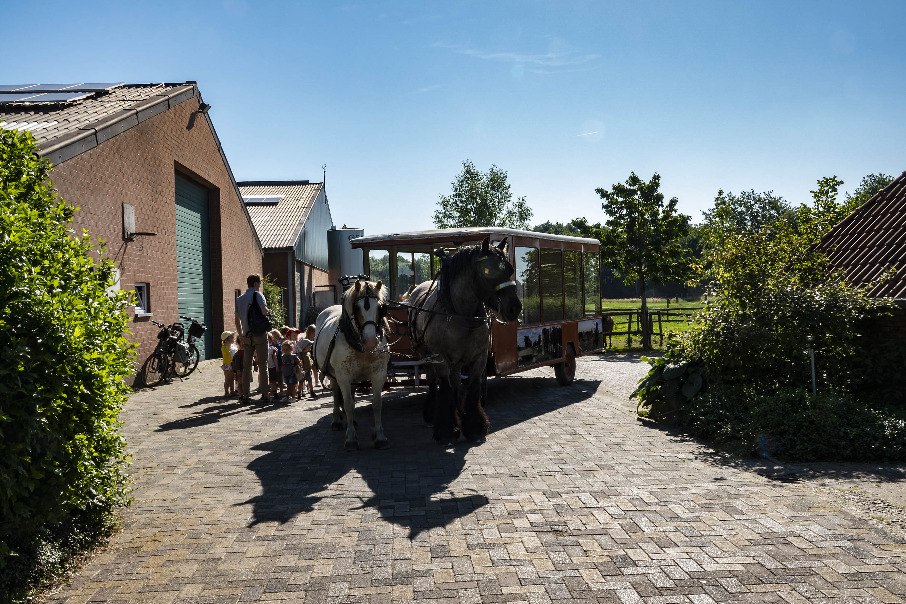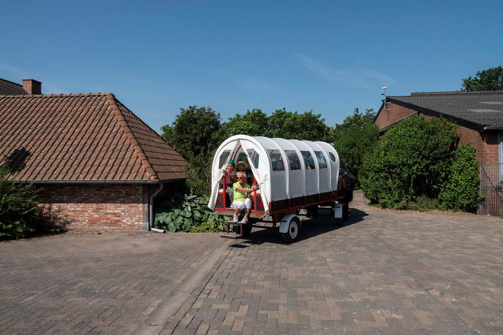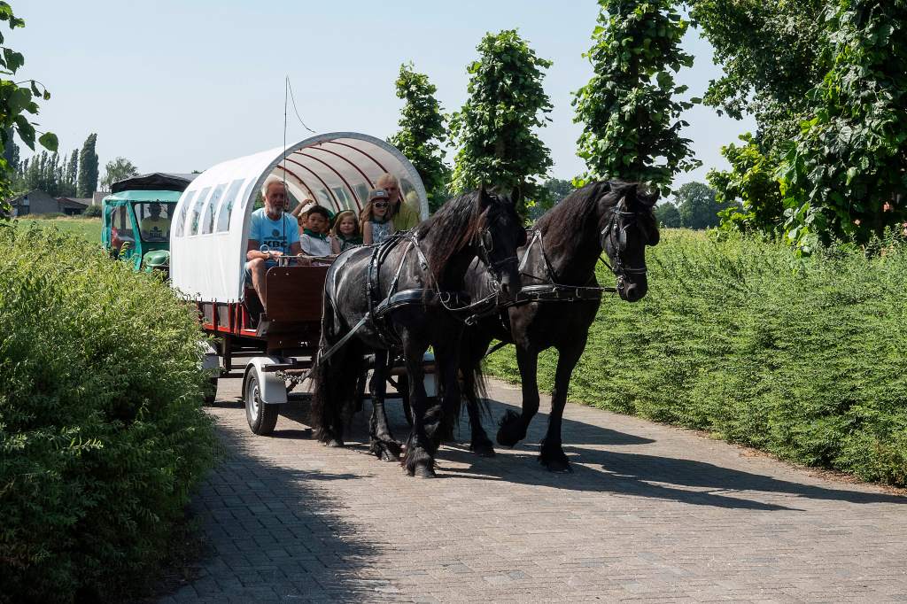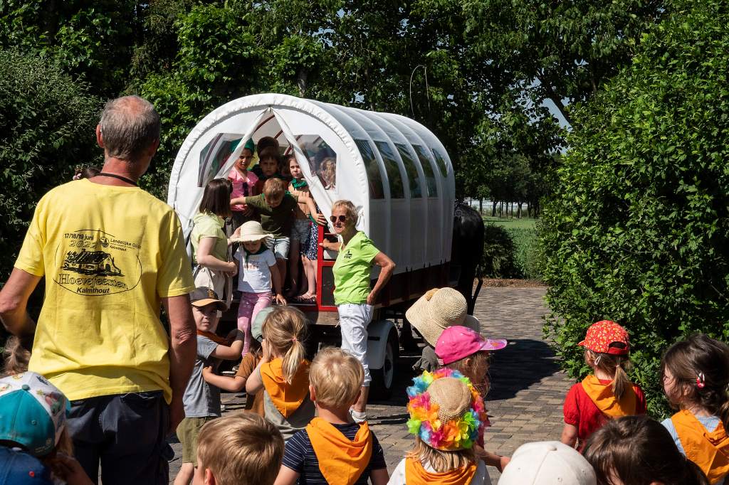 In 2024 brachten meer dan 1000 kindjes een bezoek aan onze boerderij. Uiteraard moeten ze niet teveel stappen. Er zullen ook weer ritjes zijn met paard en kar naar het melkveebedrijf van onze schepen van landbouw Sandra Hoppenbrouwers