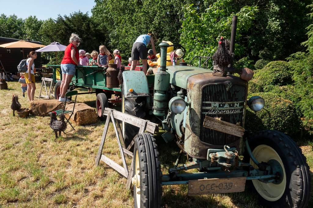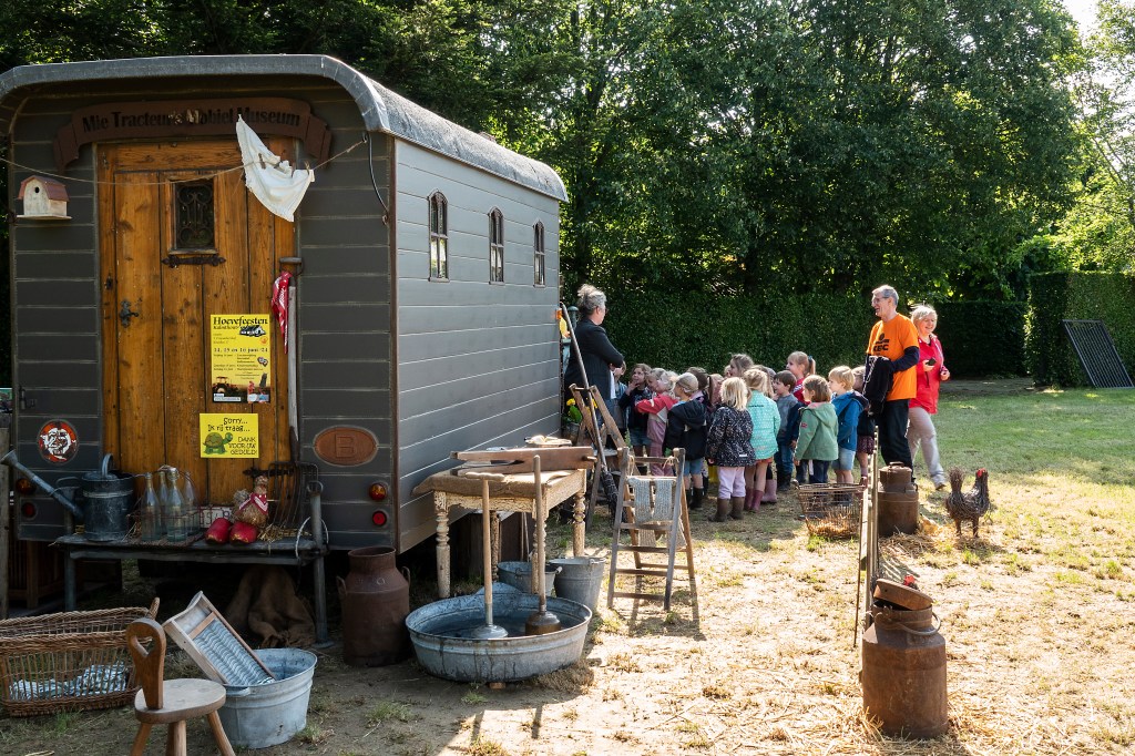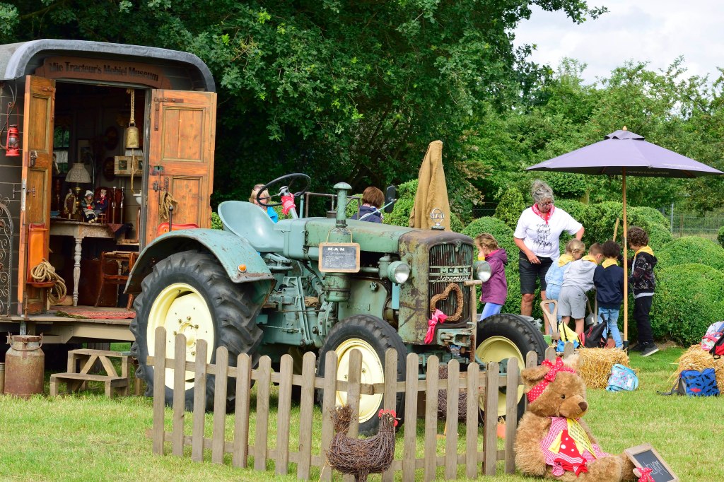 Respect voor het erfgoed, dat is het levensdoel van Mie Tracteur! Begonnen welgeteld 25 jaar geleden met een dolle verliefdheid op een MAN Ackerdiesel, werd ook nadien een vurige wens realiteit: een Landini ééncilinder gloeikoptractor! Tel daarbij nog een eigen creatie van haar oude woonwagentje, én een prachtige oude boerderij helemaal gevuld met allemaal authentieke spullen! Een ware streling voor het oog… Een uit de hand gelopen hobby, zo ver is duidelijk! Haar enige doel is mensen, maar ook kinderen ontroeren door de schoonheid eigen aan vroeger, weer te geven in meerdere dimensies! Geniet van al wat u voor de ogen komt, hier op de heerlijke Hoevefeesten of in haar nostalgisch museum… Plattelandsmuseum ‘De Schuur’ is steeds te bewonderen op afspraak. Oude Baan 12 te Rijkevorsel. Voor alle info www.mietracteur.eu of 0485.159.485….