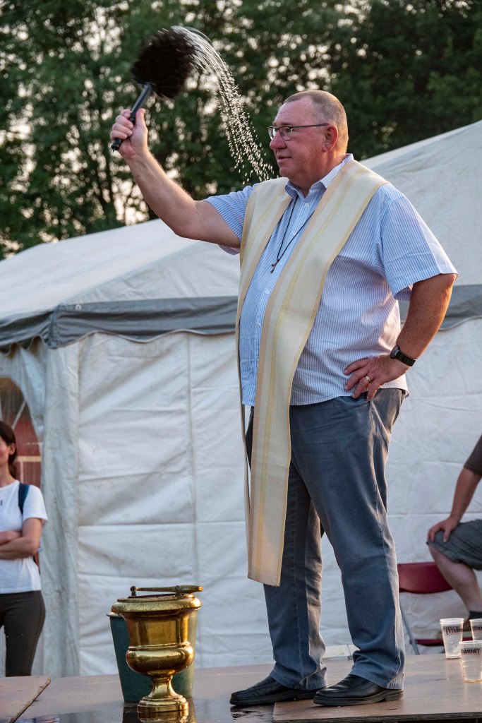 Om ons feestweekend te starten en iedereen naar onze Hoevefeesten-weide te begeleiden werd er gedacht om een wijding te organiseren. Dit om onze katholieke oorsprong aan te geven, maar vooral om onze boeren en hun landbouwvoertuigen een veilig en gezegend jaar te bezorgen.