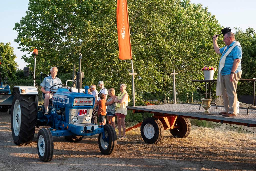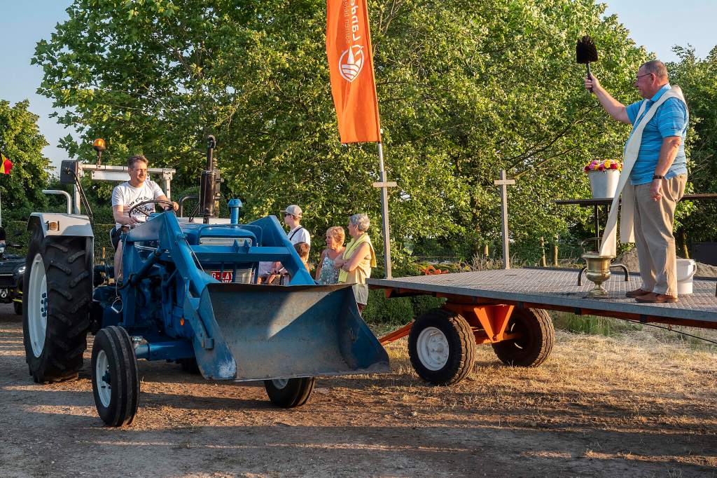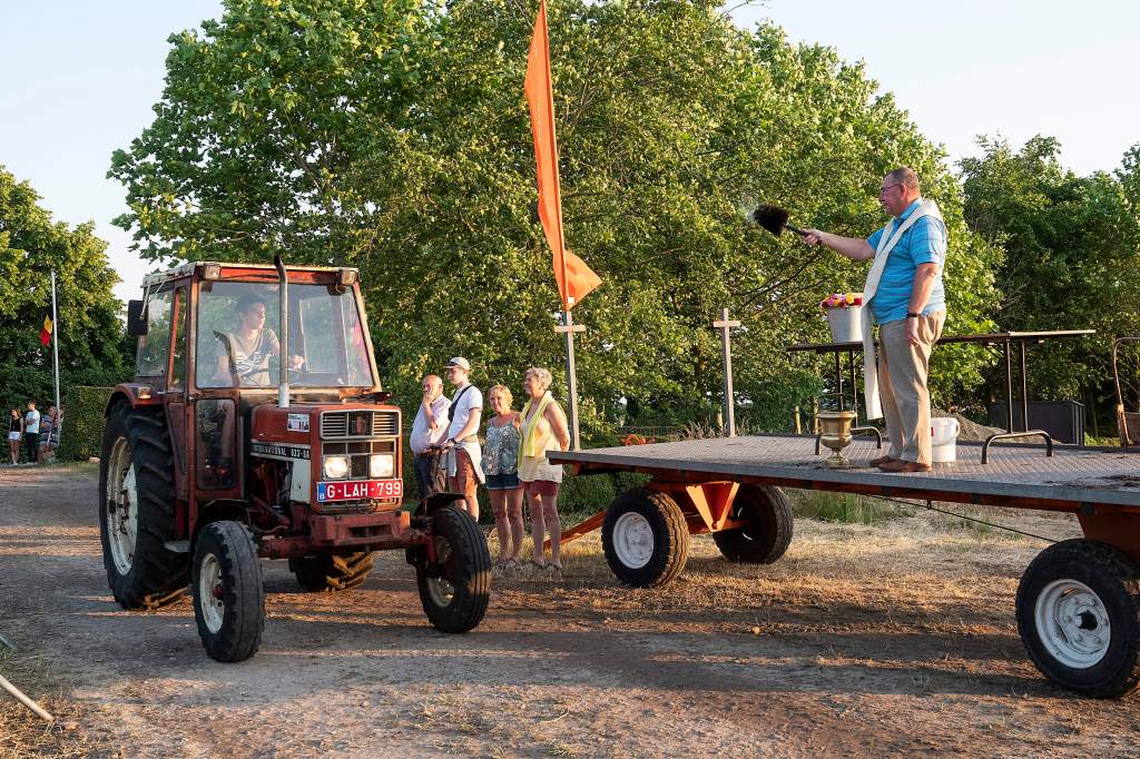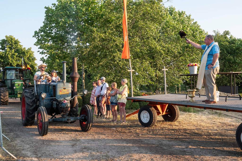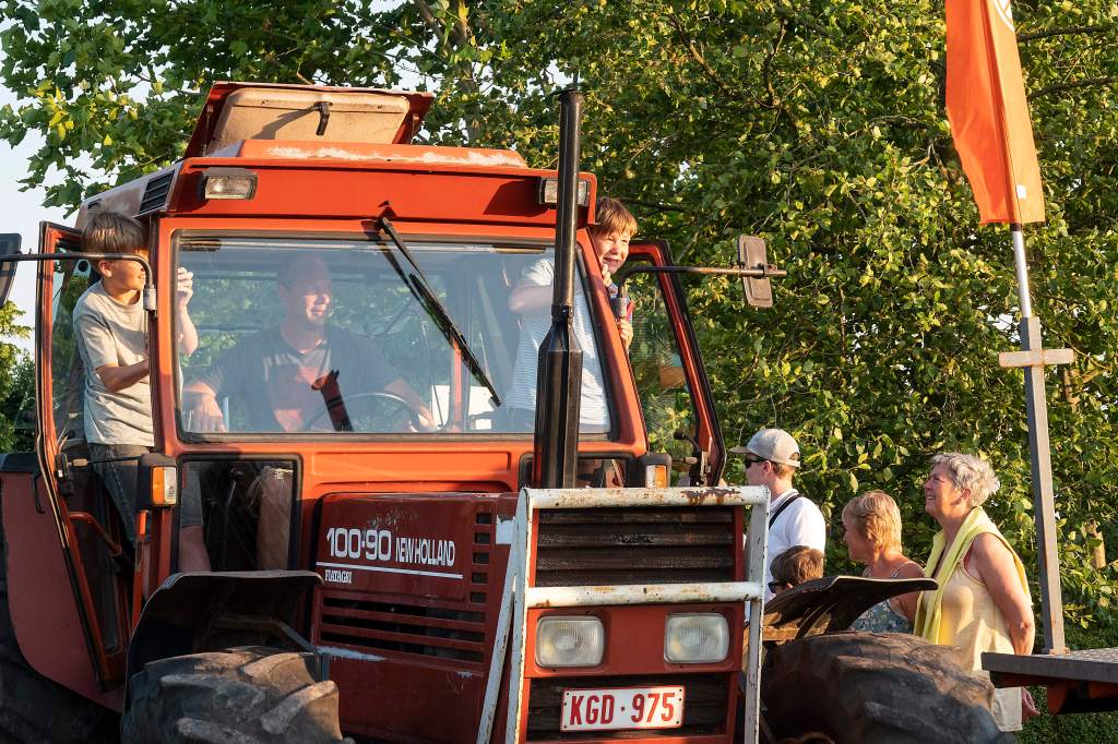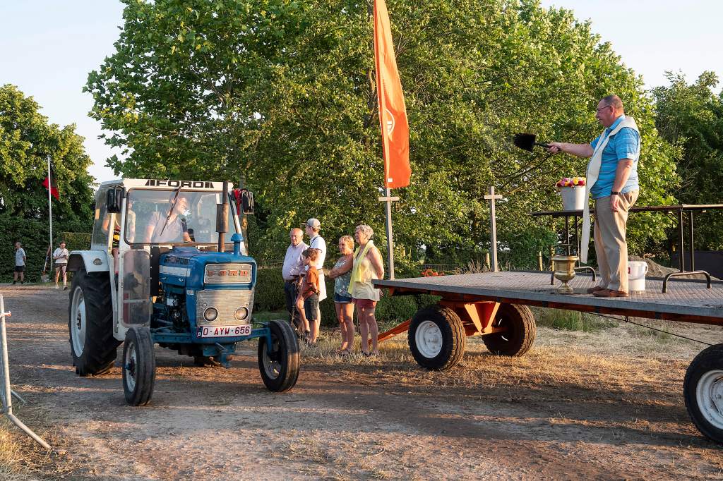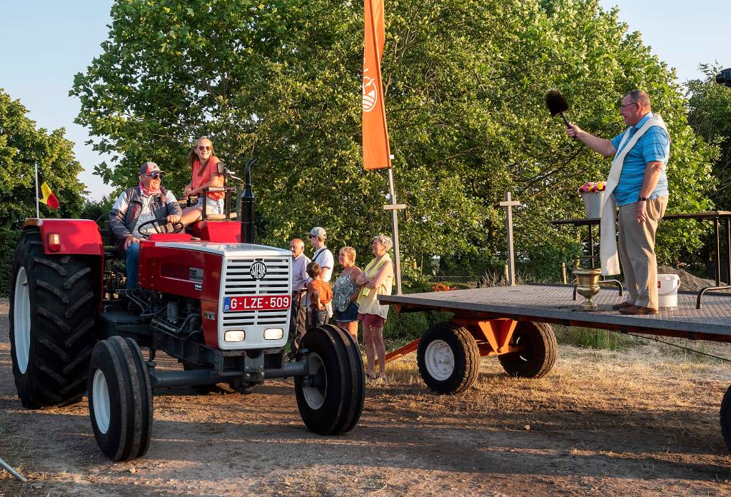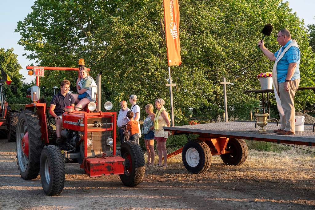 Dit doen we door een tractorprocessie te starten langs het centrum van Kalmthout (Kerk en Gemeentehuis) en verder door te rijden naar onze feest locatie voor de echte wijding.