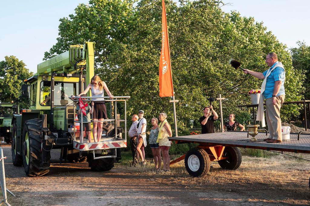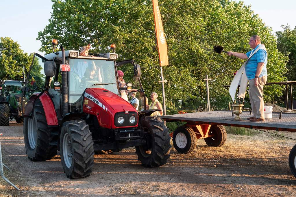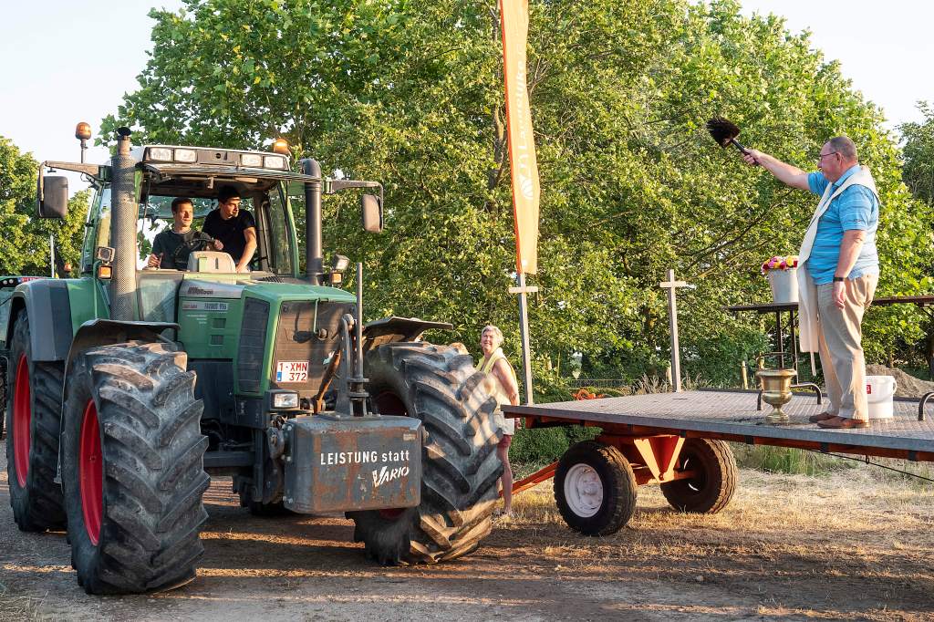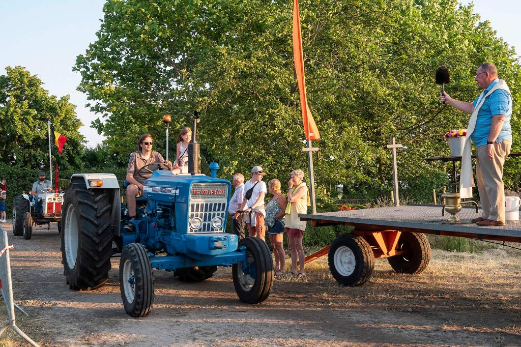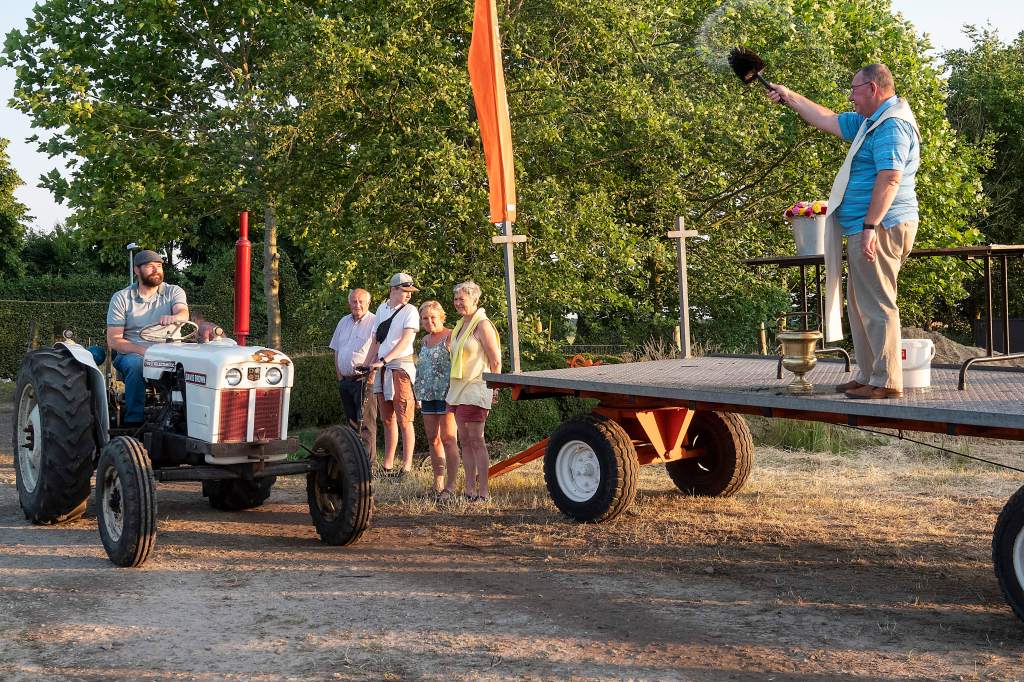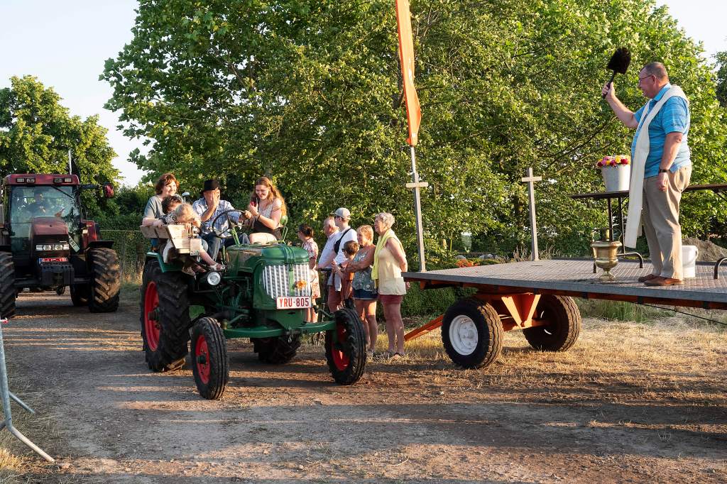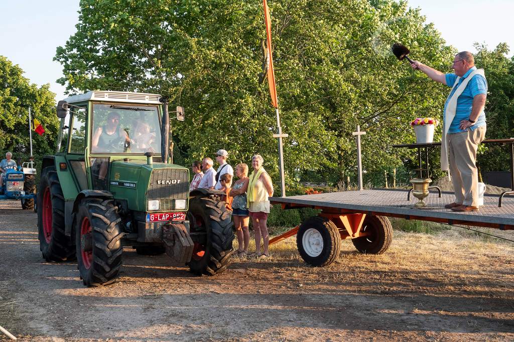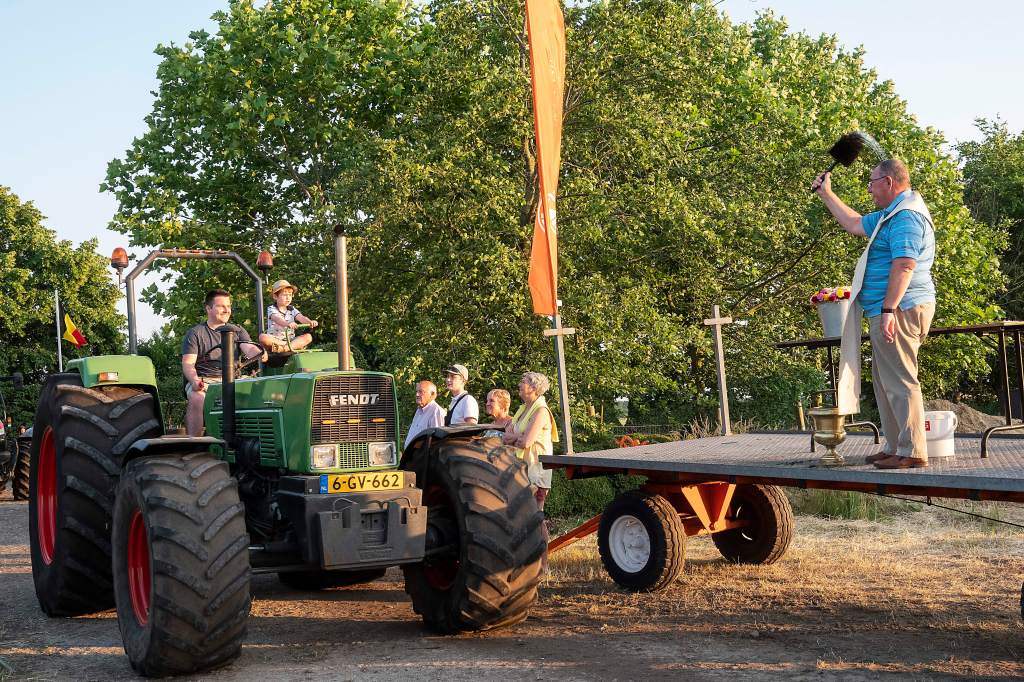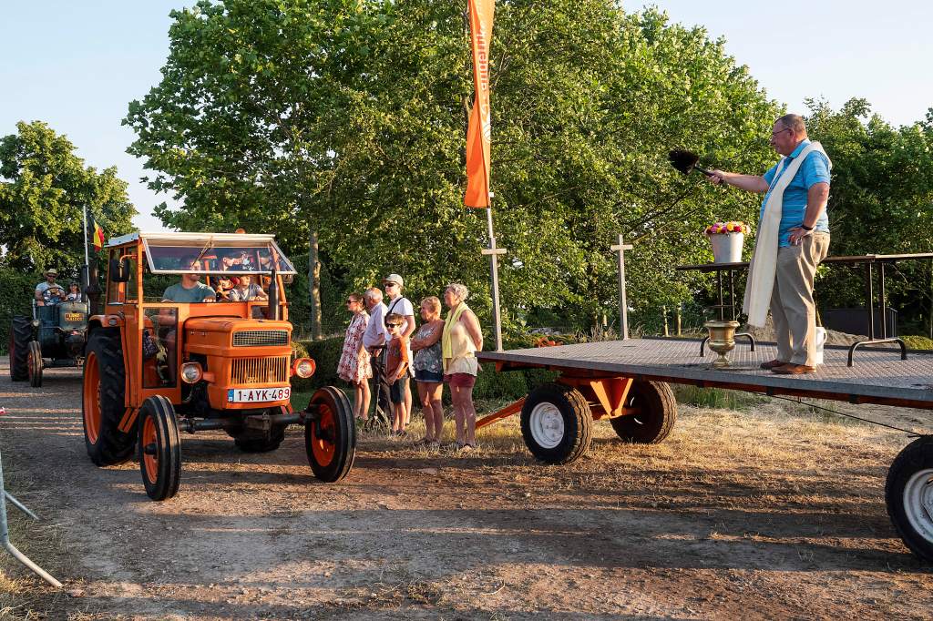 Dit doen we door een tractorprocessie te starten langs het centrum van Kalmthout (Kerk en Gemeentehuis) en verder door te rijden naar onze feest locatie voor de echte wijding.